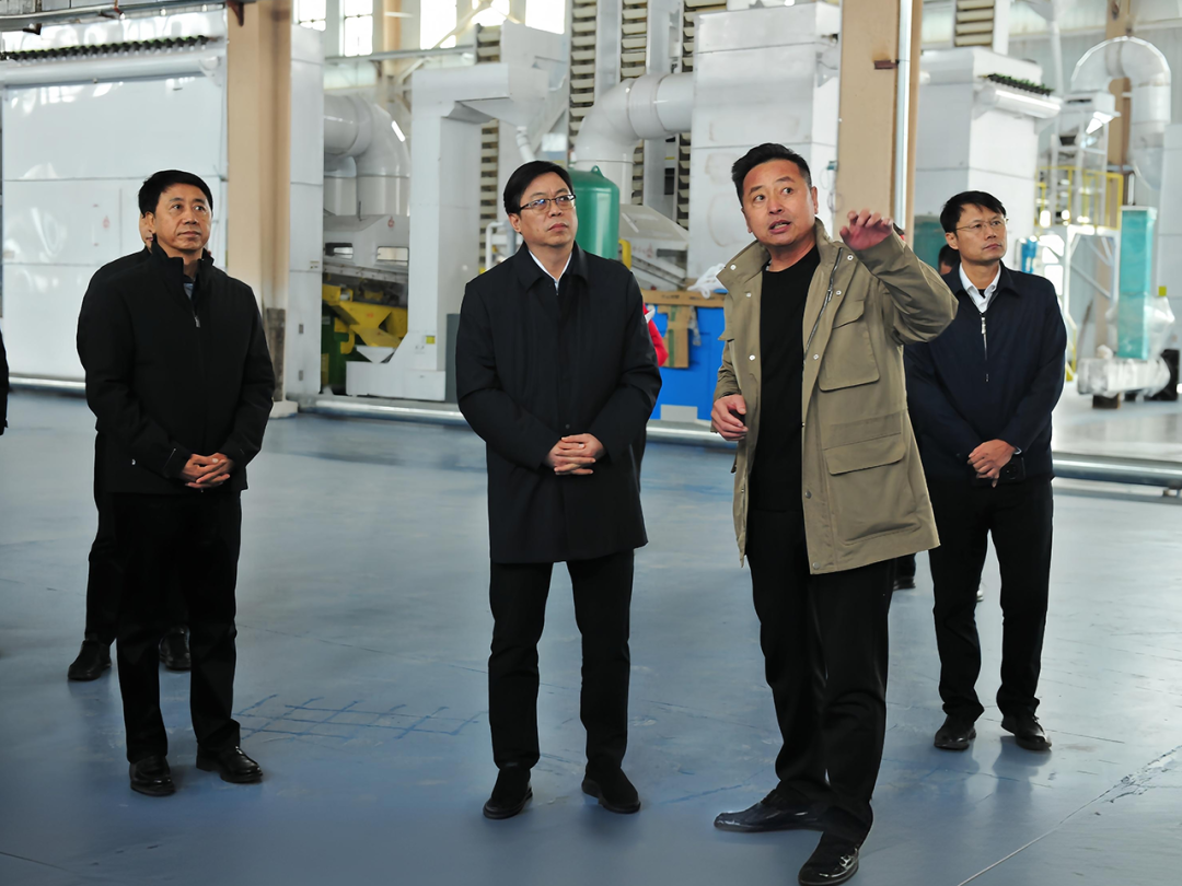 11月5日,地委书记支现伟在新疆青耕国际商贸有限公司实地查看企业厂房建设,了解生产线安装、调试等情况。塔城地区融媒体中心记者汪春林摄