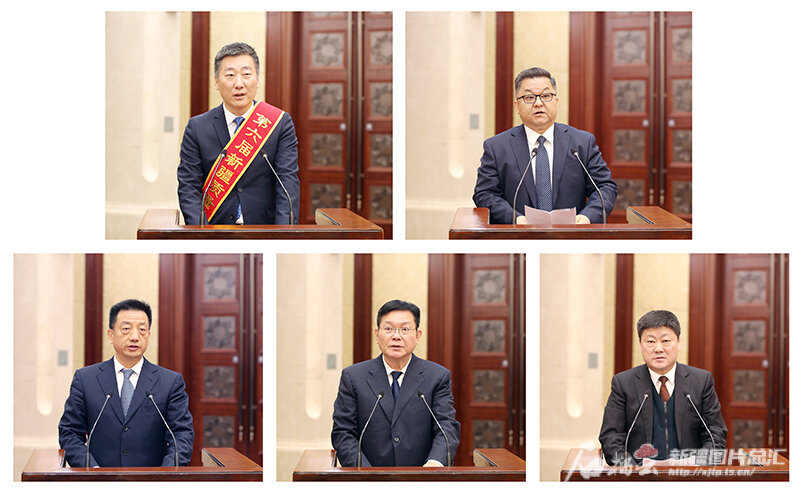 1月10日,自治区质量强区大会在乌鲁木齐召开。会上,特变电工智能电气有限责任公司、哈密市、自治区住房和城乡建设厅、兵团第一师阿拉尔市、自治区市场监督管理局有关负责同志发言(从左至右、从上至下)。天山网-新疆日报记者 谢龙 摄
