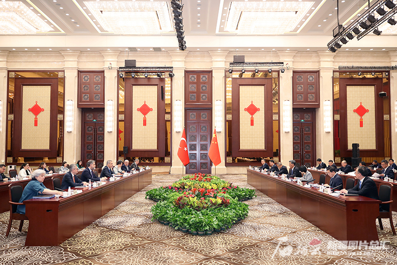 6月5日,自治区党委书记马兴瑞、自治区主席艾尔肯·吐尼亚孜在乌鲁木齐会见土耳其外交部长费丹一行。天山网-新疆日报记者 崔志坚摄