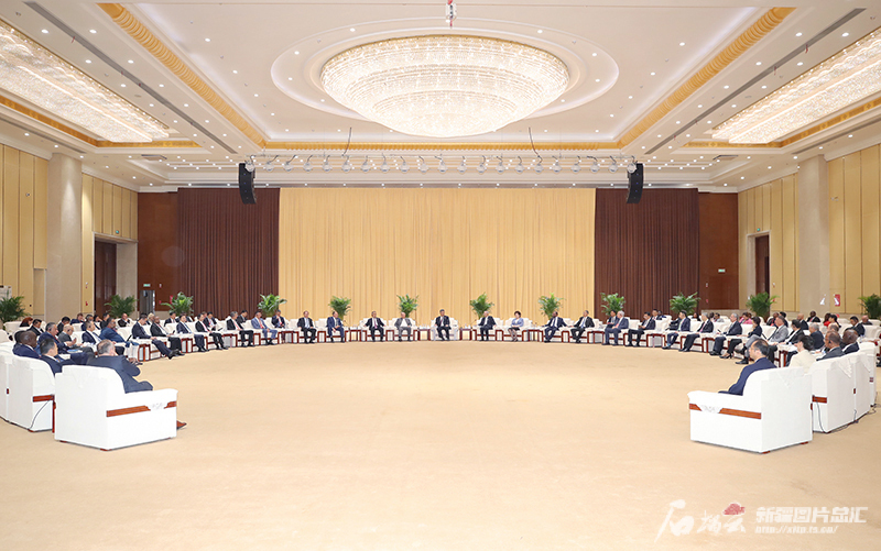 6月26日,自治区党委书记马兴瑞、自治区主席艾尔肯·吐尼亚孜在新疆国际会展中心集体会见出席博览会的部分外国部长级嘉宾、地方行政长官和有关国家驻华使节、国际组织代表等。天山网-新疆日报记者 崔志坚摄