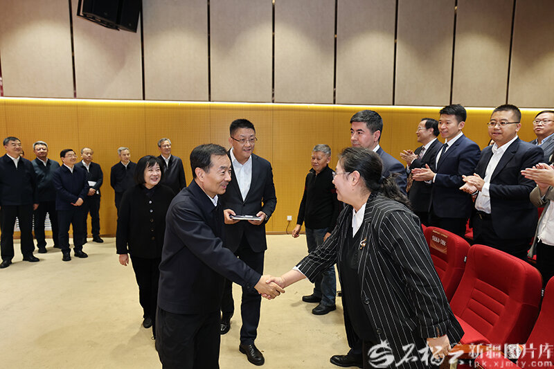 11月7日,自治区党委书记、兵团党委第一书记、第一政委陈小江在新疆日报社,看望慰问正在开展记者节活动的全区新闻工作者代表。石榴云/新疆日报记者 崔志坚摄