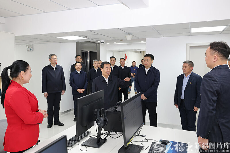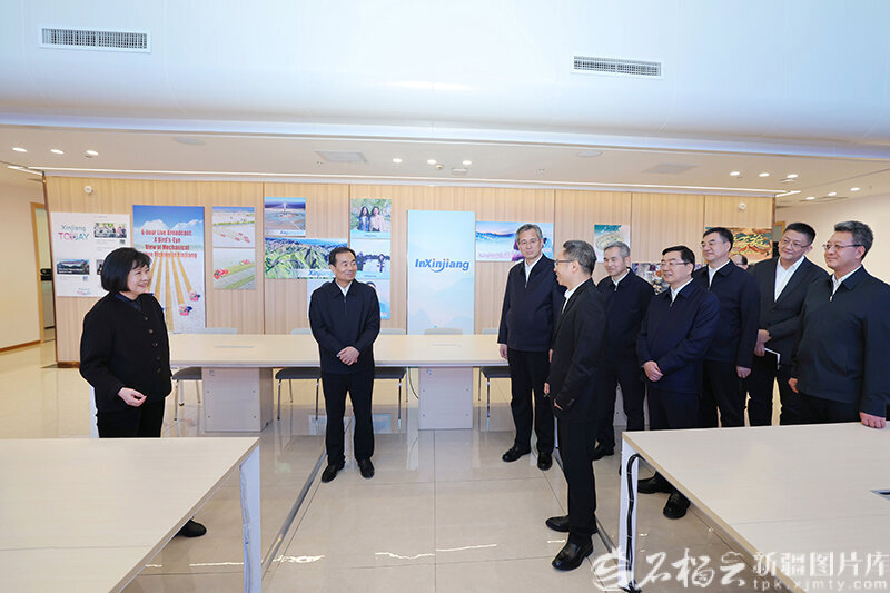 11月7日,自治区党委书记、兵团党委第一书记、第一政委陈小江在新疆日报社,察看新疆国际传播中心运营成效。石榴云/新疆日报记者 崔志坚摄