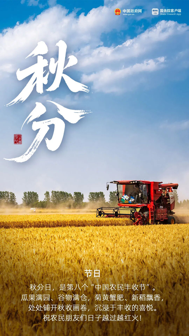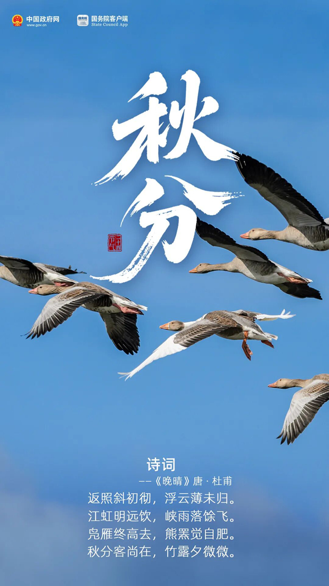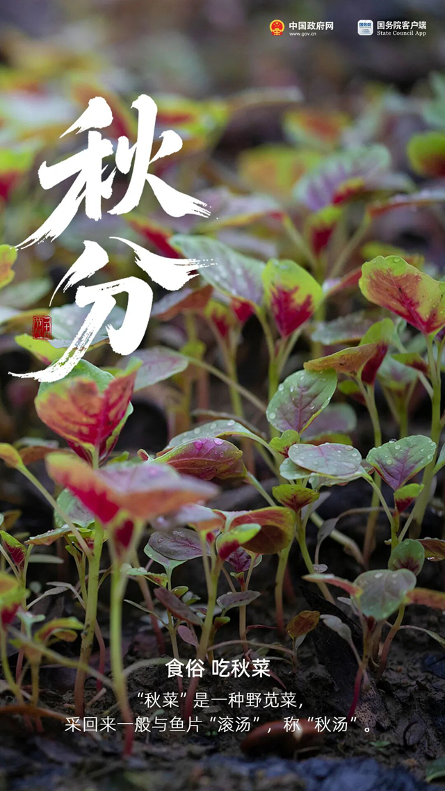 除了昼夜等长,关于秋分的这些你知道吗? 来源:中国政府网 发布时间:2025-09-23 07:55:00 浏览次数: 次 字体:小 大 打印 分享到: 今天2时19分我们迎来今年秋天第四个节气秋分!秋分分享收获的喜悦,礼赞劳动的辛勤。扫码来分享你的节气故事,你的秋天,一定非常精彩!戳视频,看秋分↓ 扫一扫在手机打开当前页