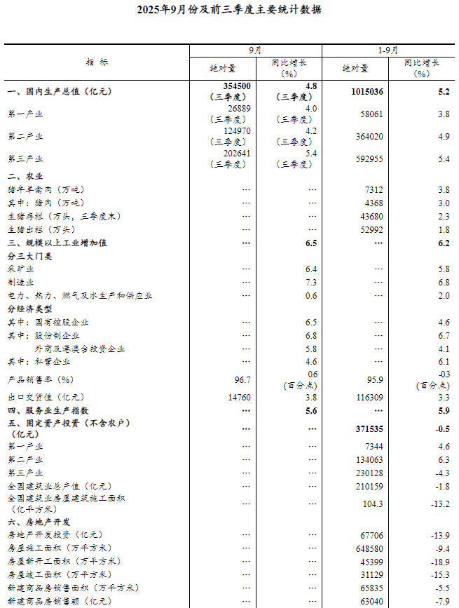 国家统计局:前三季度经济运行稳中有进 高质量发展取得积极成效
