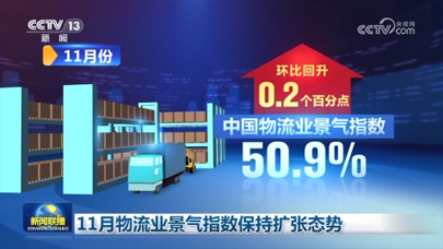 中国物流与采购联合会今天(12月3日)公布,11月份中国物流业景气指数为50.9%,环比回升0.2个百分点。