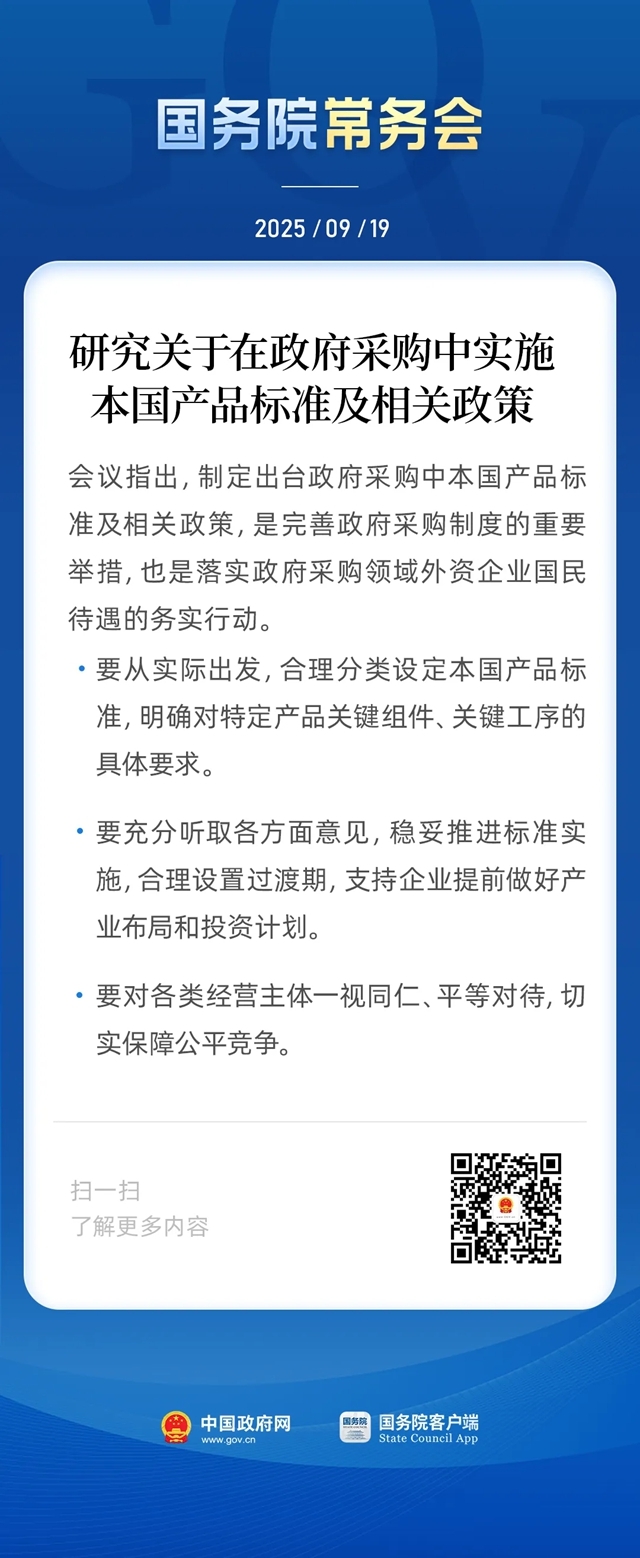 国常会:研究关于在政府采购中实施本国产品标准及相关政策