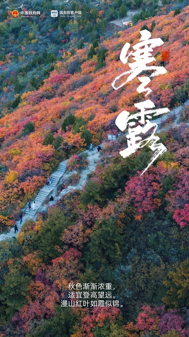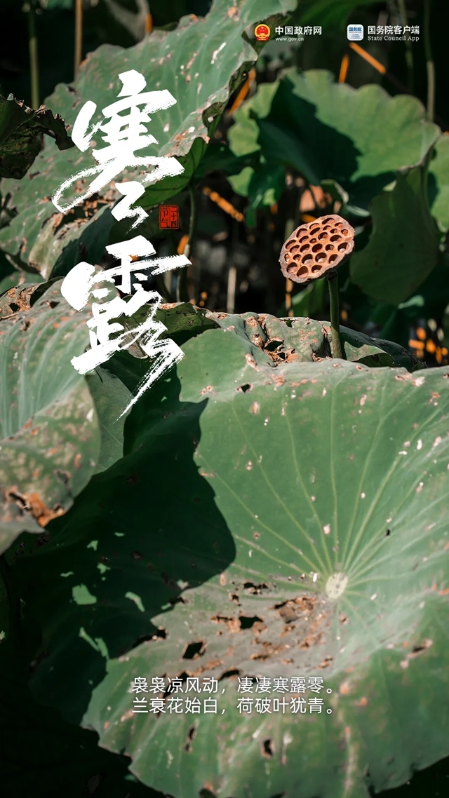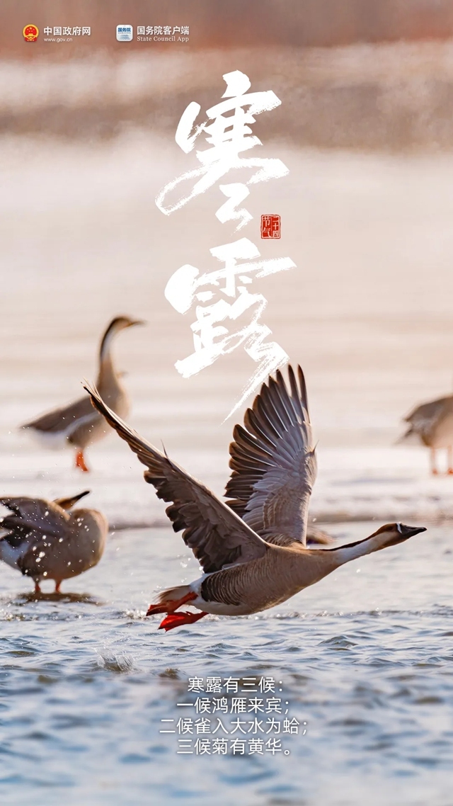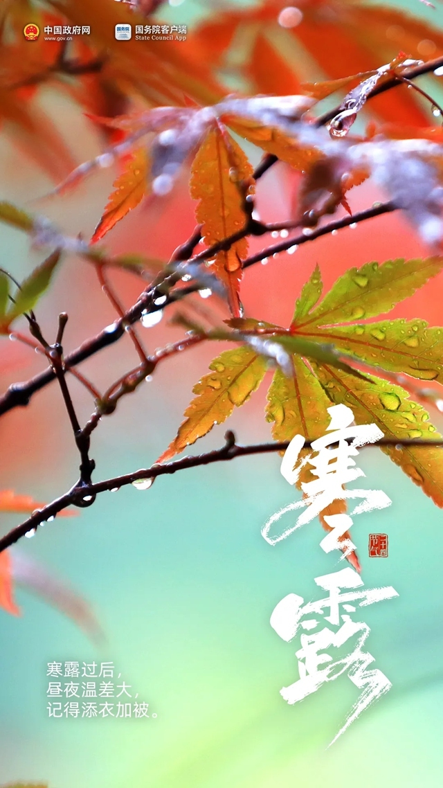 今天8:41,进入第一个带“寒”的节气 来源:中国政府网 发布时间:2025-10-08 09:13:00 浏览次数: 次 字体:小 大 打印 分享到: 今天8点41分,我们迎来寒露节气。寒露是二十四节气中最早出现“寒”字的节气,标志着深秋已至。 扫一扫在手机打开当前页