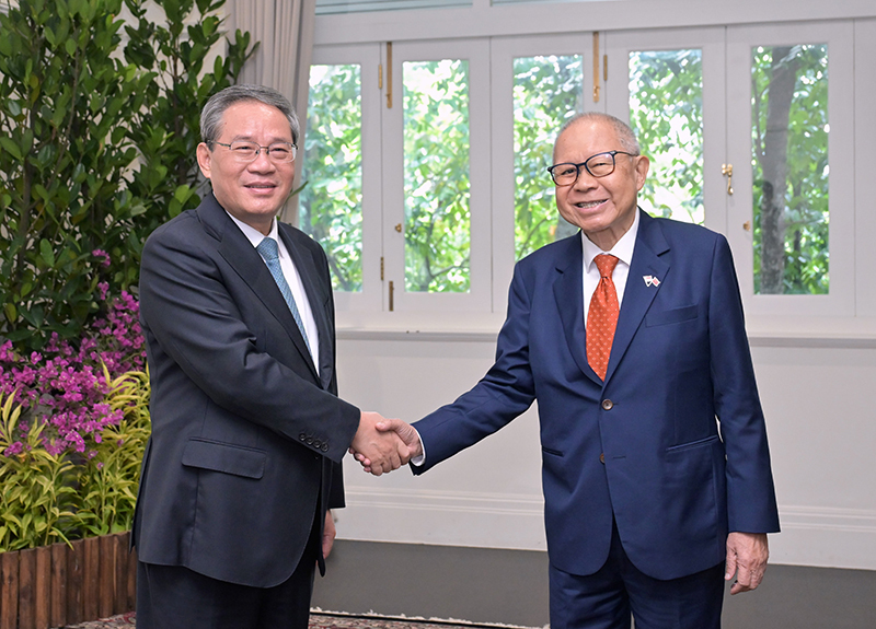 当地时间10月26日,国务院总理李强在新加坡总统府会见新加坡代总统张赞成。新华社记者 高洁 摄