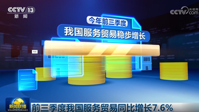 前三季度我国服务贸易同比增长7.6% 来源:央视网 发布时间:2025-11-05 21:34:00 浏览次数: 次 字体:小 大 打印 分享到: 商务部最新数据显示,今年前三季度,我国服务贸易稳步增长,服务进出口总额59362.2亿元,同比增长7.6%。其中,出口26015亿元,增长14.4%;进口33347.2亿元,增长2.8%。服务贸易规模扩大的同时,结构也持续优化。前三季度,知识密集型服务进出口增长6.4%。其中,其他商业服务、电信计算机和信息服务进出口增长较快。前三季度,旅行服务进出口增长8.8%。其中,出口增长54.4%,进口增长2.7%。 扫一扫在手机打开当前页